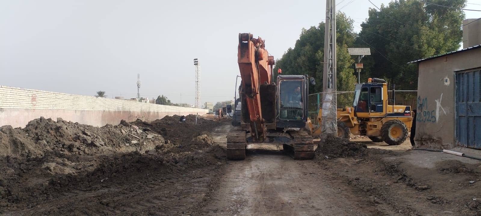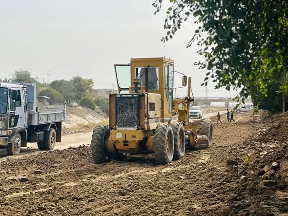 فريق الجهد الخدمي والهندسي يباشر أعماله في مشروع فتح مسار يربط حولي الجامعة- فلكة ابو وسام المطوكي بطريق ديوانية-نجف