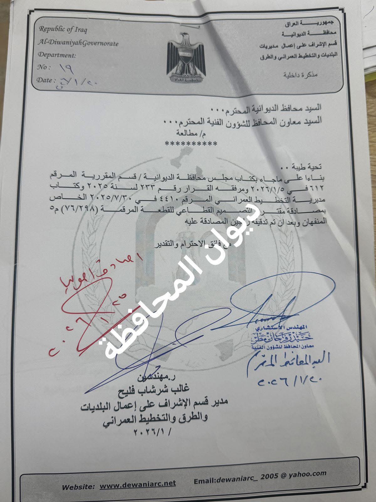 محافظ الديوانية الأستاذ عباس شعيل الزاملي يستقبل عضو مجلس النواب العراقي السيد “حسين العنكوشي”