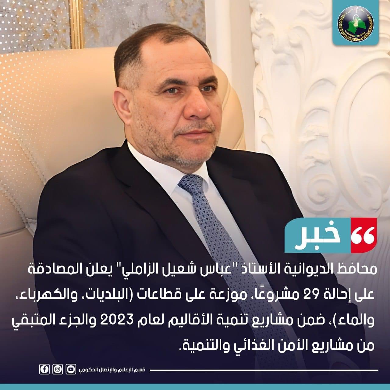 محافظ الديوانية الأستاذ “عباس شعيل الزاملي” يعقد اجتماعًا مع اللجنة الزراعية العليا ورؤساء الوحدات الإدارية لمناقشة الخطة الصيفية لزراعة محصول الشلب